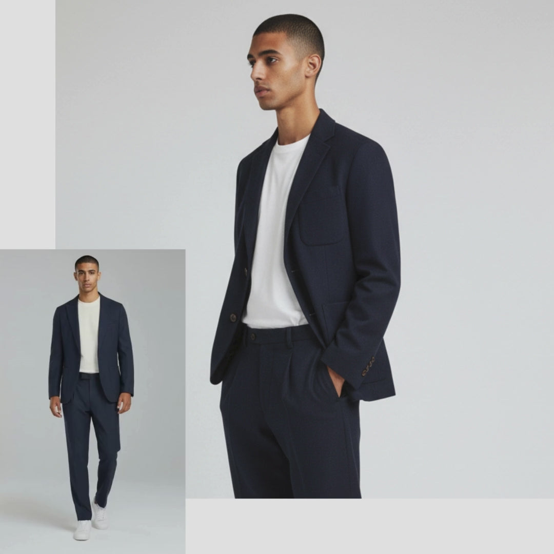 This collection features single breasted and double-breasted suits, complete with a pull-out hanky. Pair them with a crisp shirt for a polished look or throw on a tee for a more relaxed vibe.
