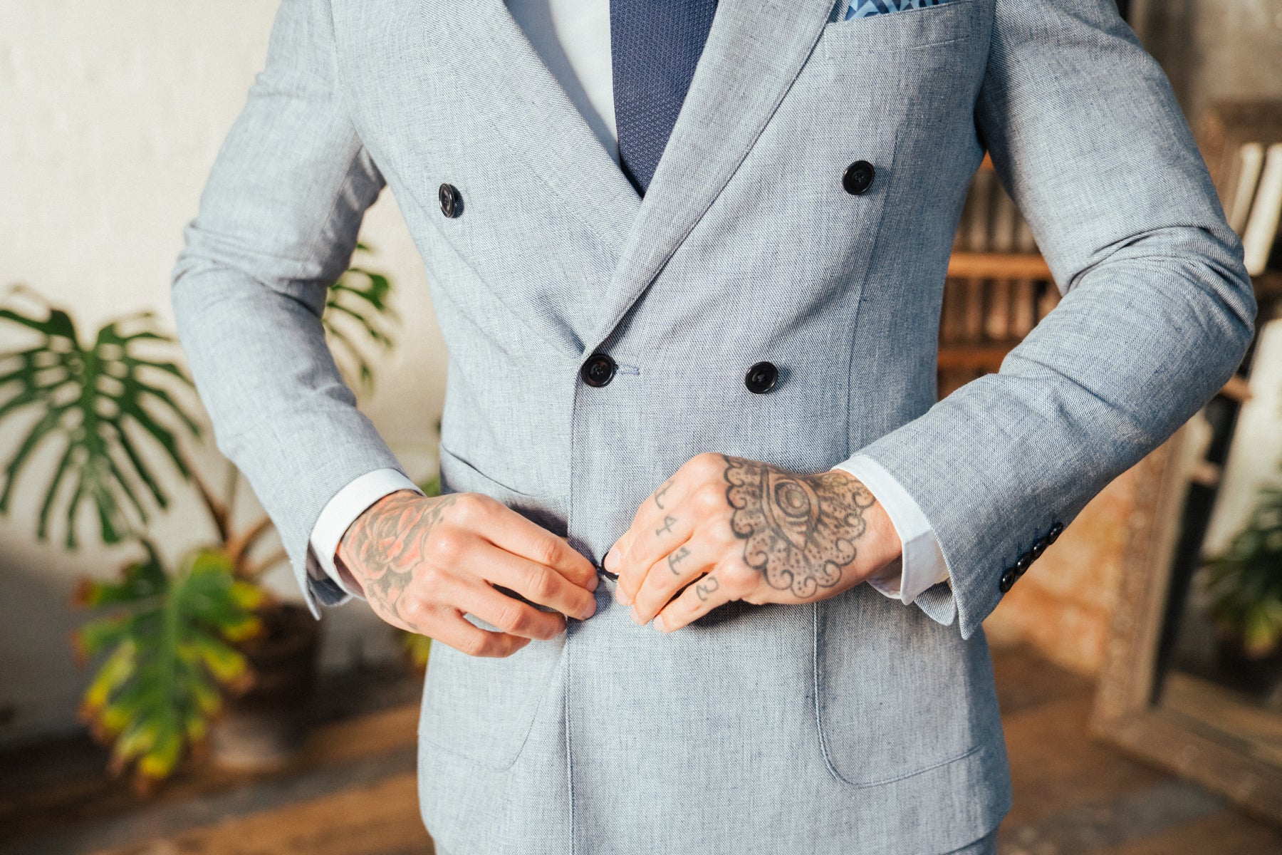 Giacomo Cotton Linen Double Breasted Suit Jacket in Chambray