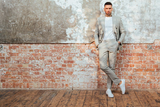 Giacomo Slim Fit Cotton Linen Suit Trousers in Green