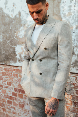 Giacomo Cotton Linen Double Breasted Suit Jacket in Green