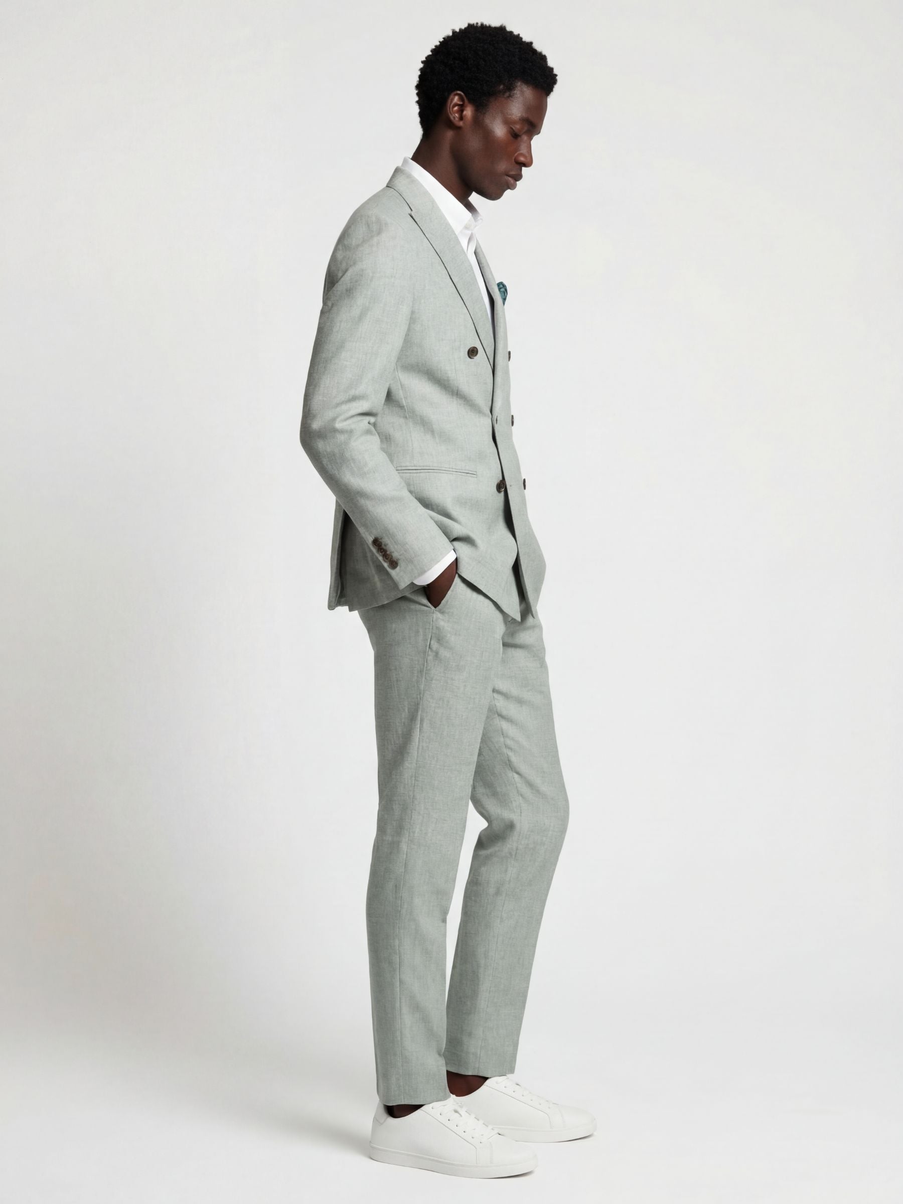 If your tailoring options could use a warm-weather lift, add this Harry Brown London suit to your rotation. Woven in a breathable cotton–linen blend, it keeps things light and airy when temperatures rise. Finished in a sharp slim fit with a fresh green tone, it’s a standout choice for weddings, parties, and any occasion that calls for smart dressing in the sun.