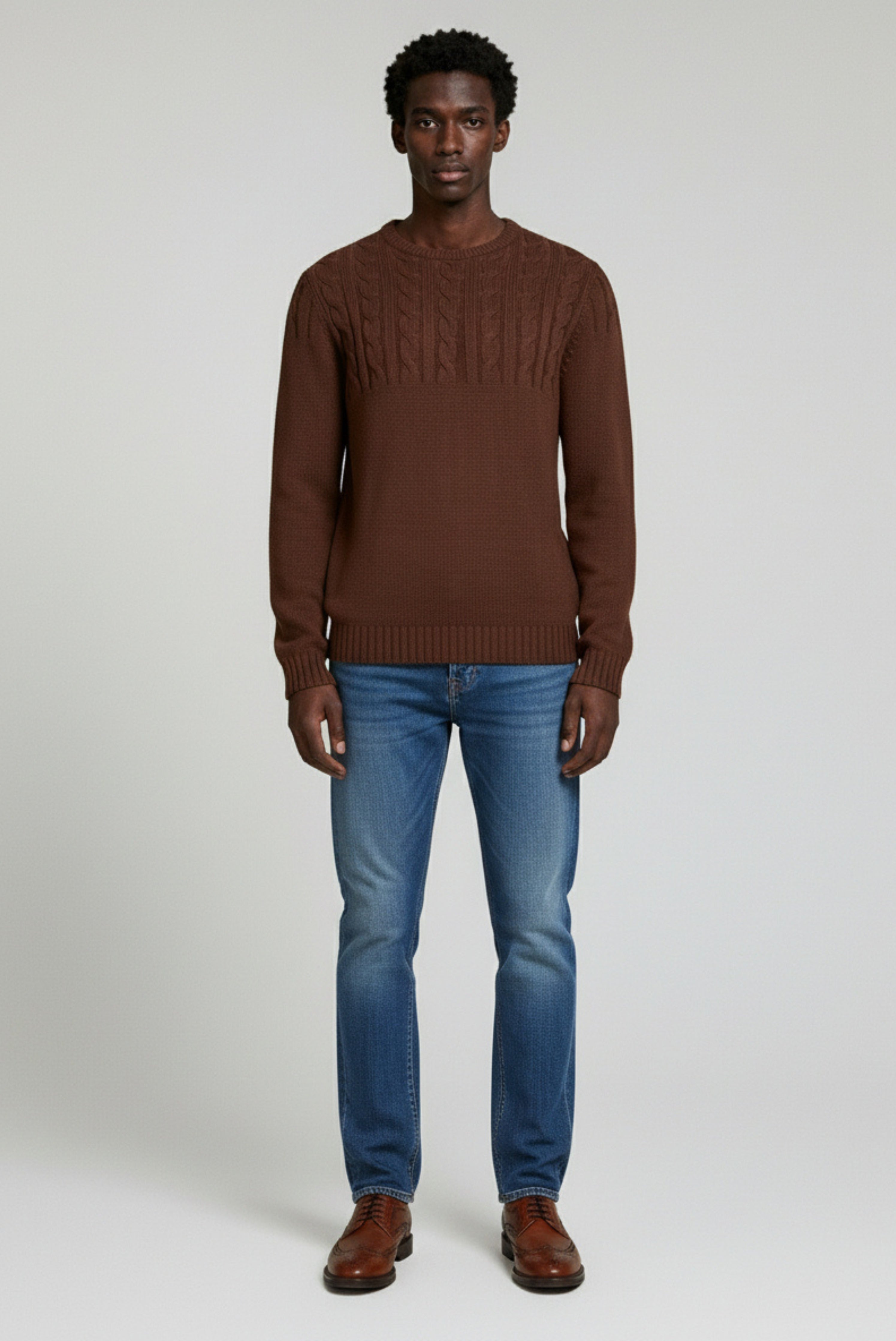 Bring some texture into your knitwear rotation with this casual crew neck jumper. Featuring a cable-knit panel through the chest and a subtle all-over knit, it delivers interest without feeling fussy – an easy way to elevate your everyday denim-and-boots uniform.