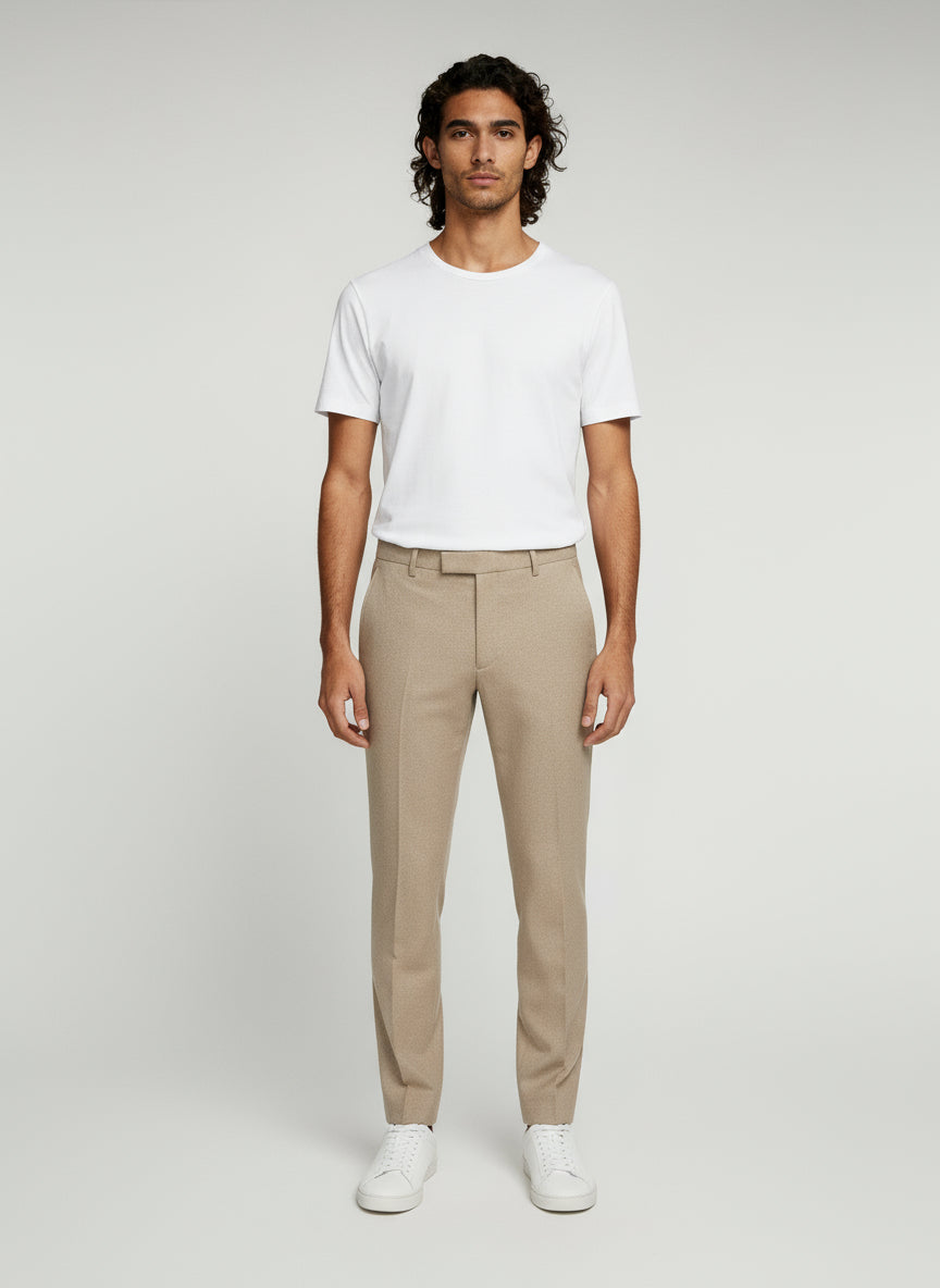 Bring a touch of understated luxury to your tailoring with this two-piece wool tweed suit in a soft light-beige melange. Cut from a brushed wool-blend fabric, it has subtle texture and warmth that feels perfectly at home from winter weddings to smart-casual Fridays.