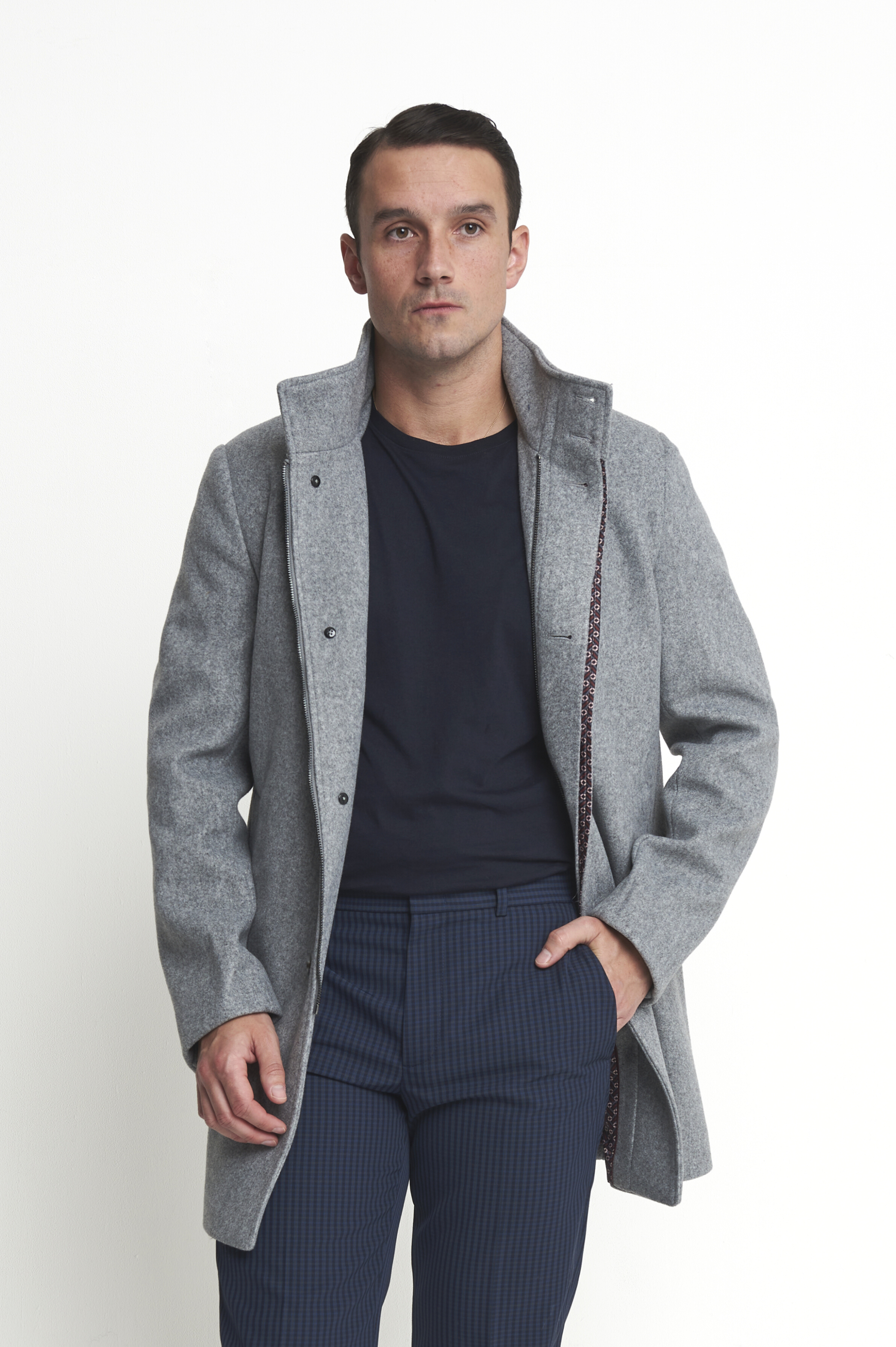 Introducing the Harry silver grey funnel neck coat to our brand new outerwear collection. The funnel neck collar helps to keep out any wind on a cold day, making it a brilliant option for those that require style when finishing an outfit, without compromising on practicality.